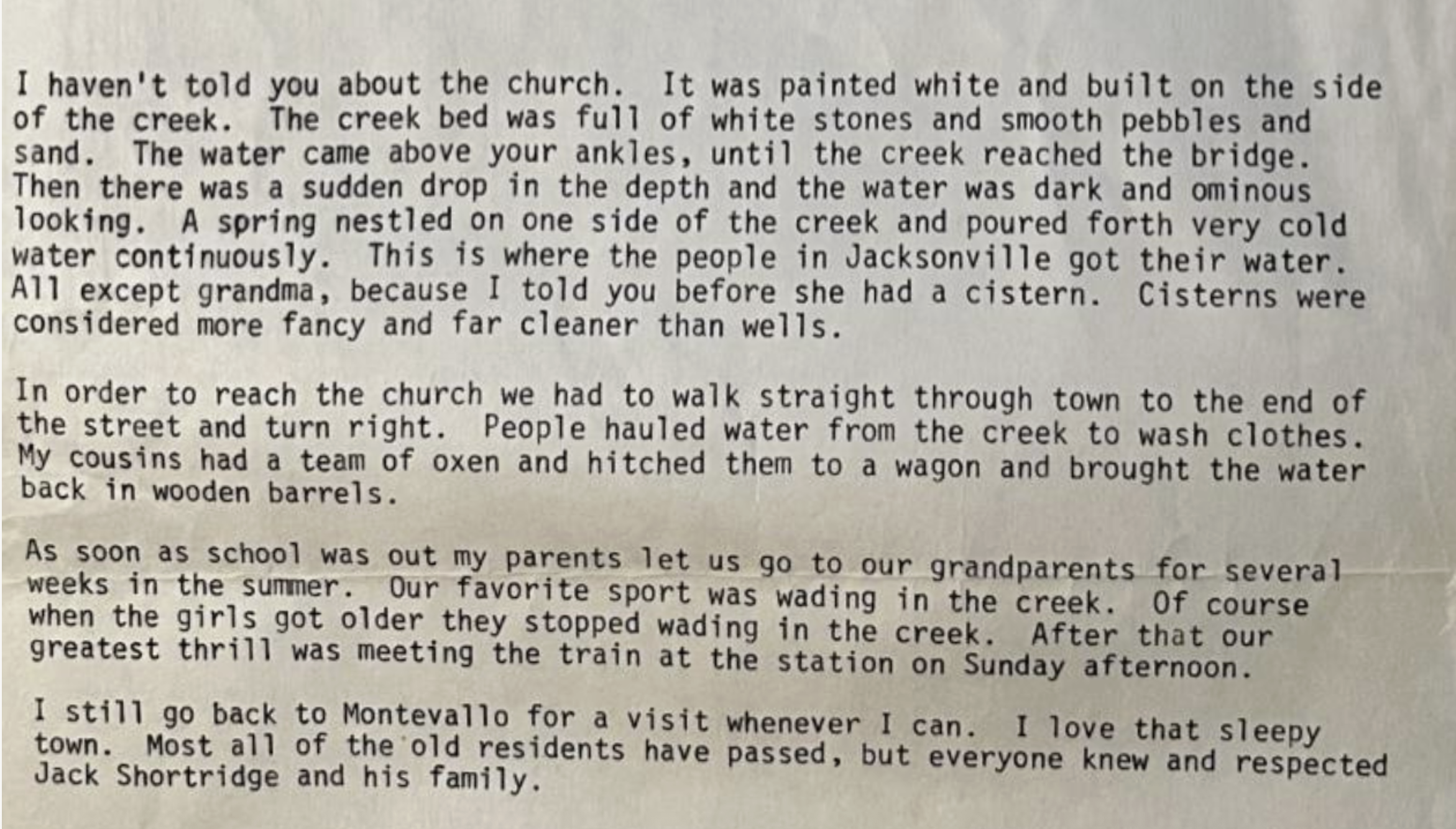 Their granddaughter, born in Montevallo in 1897, had vivid memories of Jacksonville. “My grandparents had the most beautiful house on the block,” recalls Lillian Shortridge Jones. It had a parlor, a cistern on the covered back porch, and a swing on the long front porch. The yard featured a sunken green house where her grandmother, Narcissus, grew rare plants.