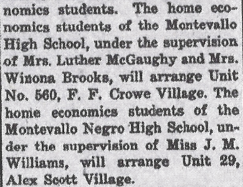 Students at the Montevallo Negro High School, soon to be renamed Prentice High School, were involved in decorating the all-Black housing project at the same time as white students of Montevallo High School decorated the all-white housing project.